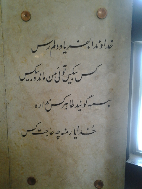 چندتا از دوبیتی های باباطاهر دورتادور مقبره روی سنگ های اطراف کنده کاری شده